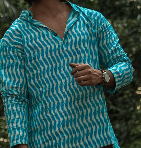 Crafted with intricate ikat weaving, this men’s kurta offers timeless style and lightweight comfort for festivals or daily wear. Made from soft, breathable cotton, it features vibrant, fade-resistant dyes and a relaxed fit.